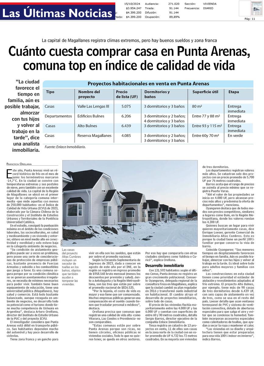PRENSA I Cuento cuesta comprase una casa en Punta Arenas, comuna top en índice de calidad de vida