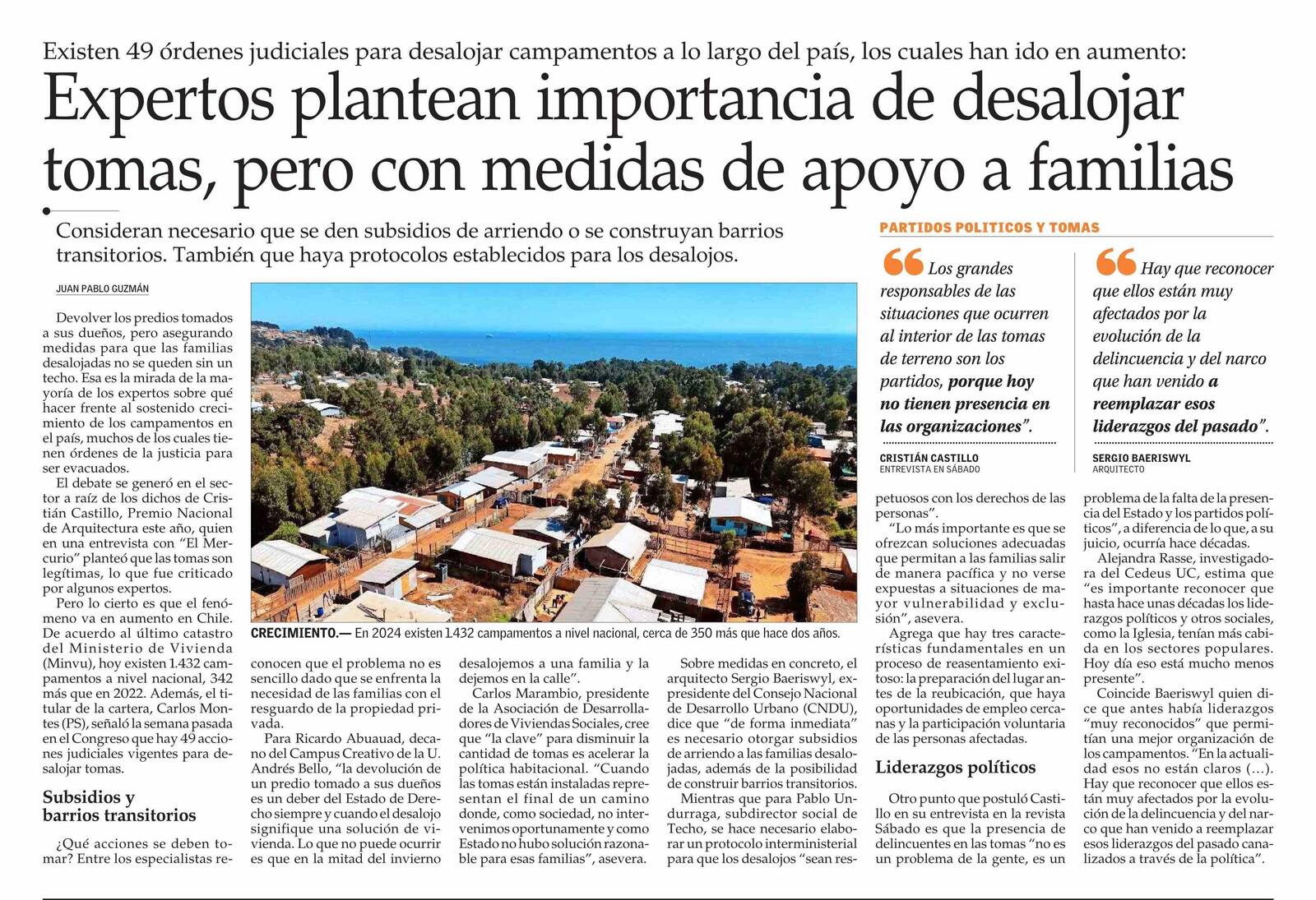 PRENSA I Expertos plantean importancia de desalojar tomas, pero con medidas de apoyo a familias