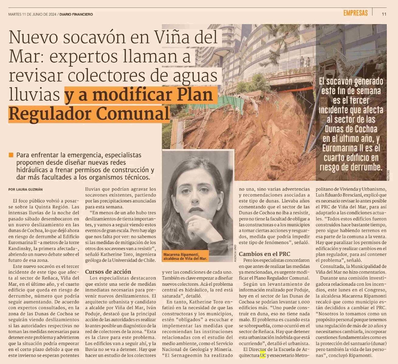 PRENSA I Nuevo socavón en Viña del Mar: expertos llaman a 4 revisar colectores de agua lluvis y a modificar Plan Regulador Comunal