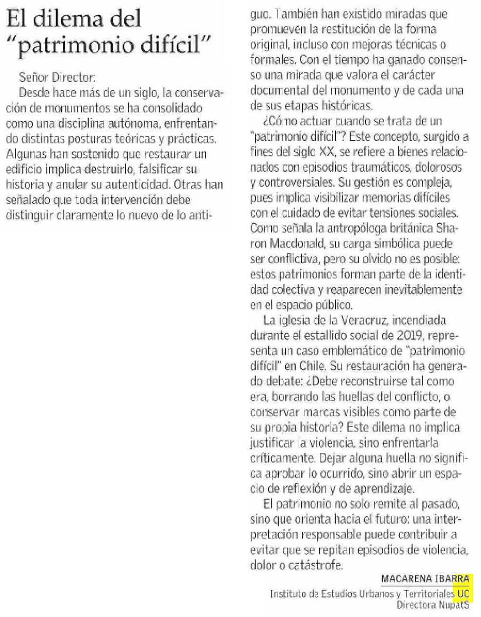 (El Mercurio) Carta al director de la profesora Macarena Ibarra