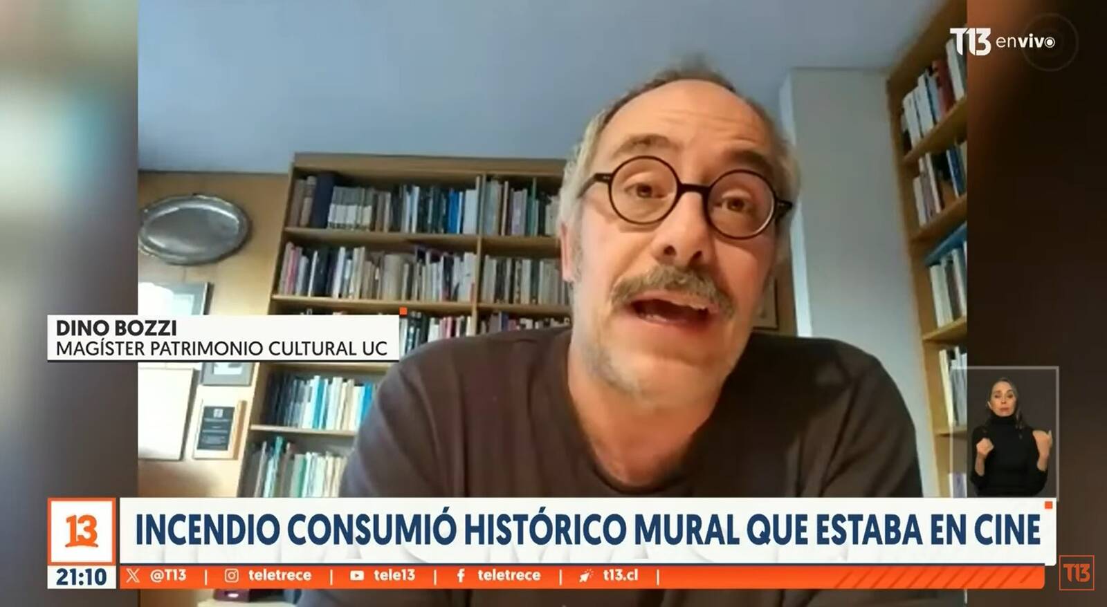 (Canal 13) Profesor Dino Bozzi se refiere a la Lamentable pérdida de mural de Nemesio Antúnez tras incendio en Santiago