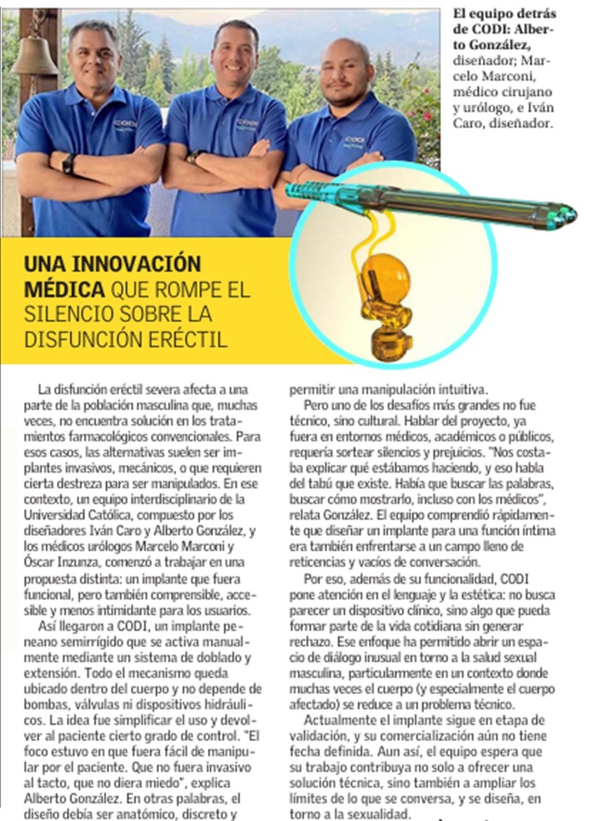 (El Mercurio) Alianza Diseño/Medicina: Innovación que rompe el silencio sobre la disfunción eréctil
