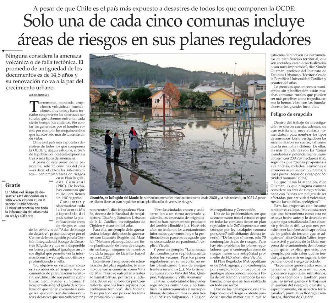 (El Mercurio) Solo una de cada cinco comunas incluye áreas de riesgos en sus planes reguladores