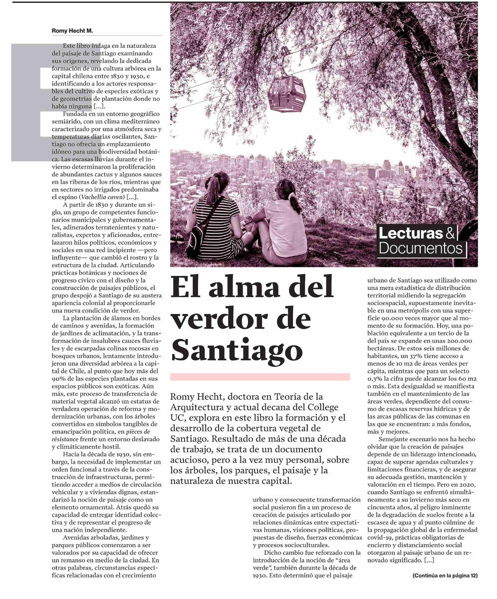 (La Segunda) El alma del verdor de Santiago, libro de la profesor Romy Hecht