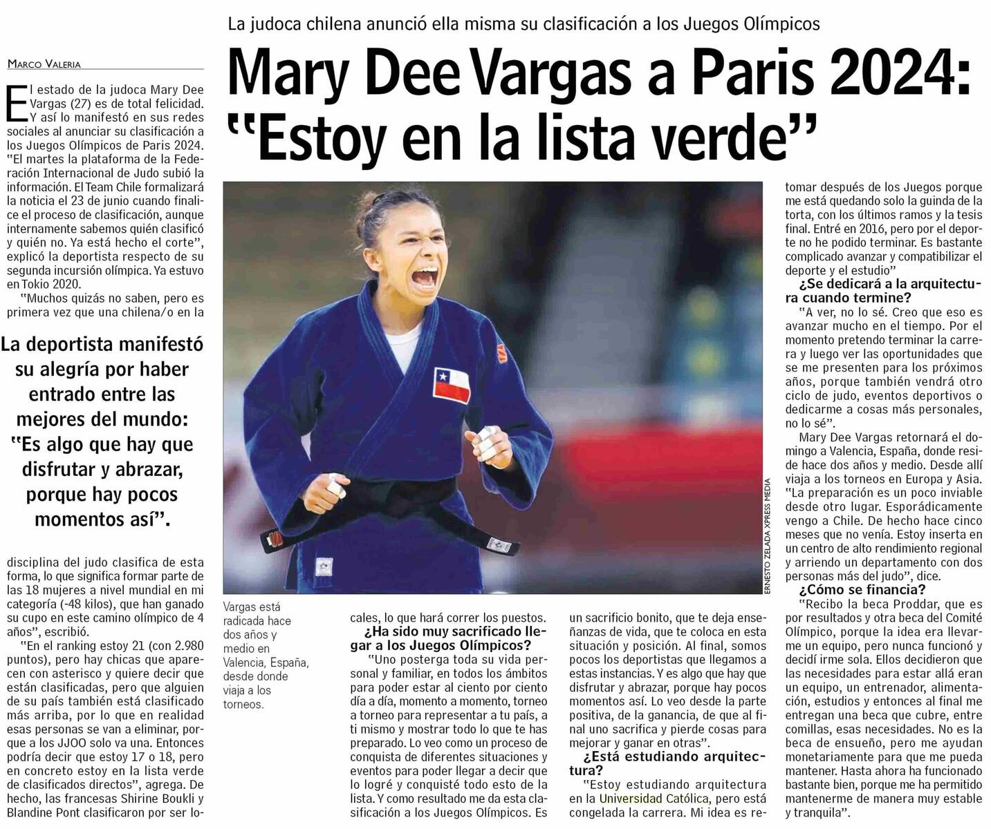PRENSA I Mary Dee Vargas a Paris 2024: “Estoy en la lista verde”