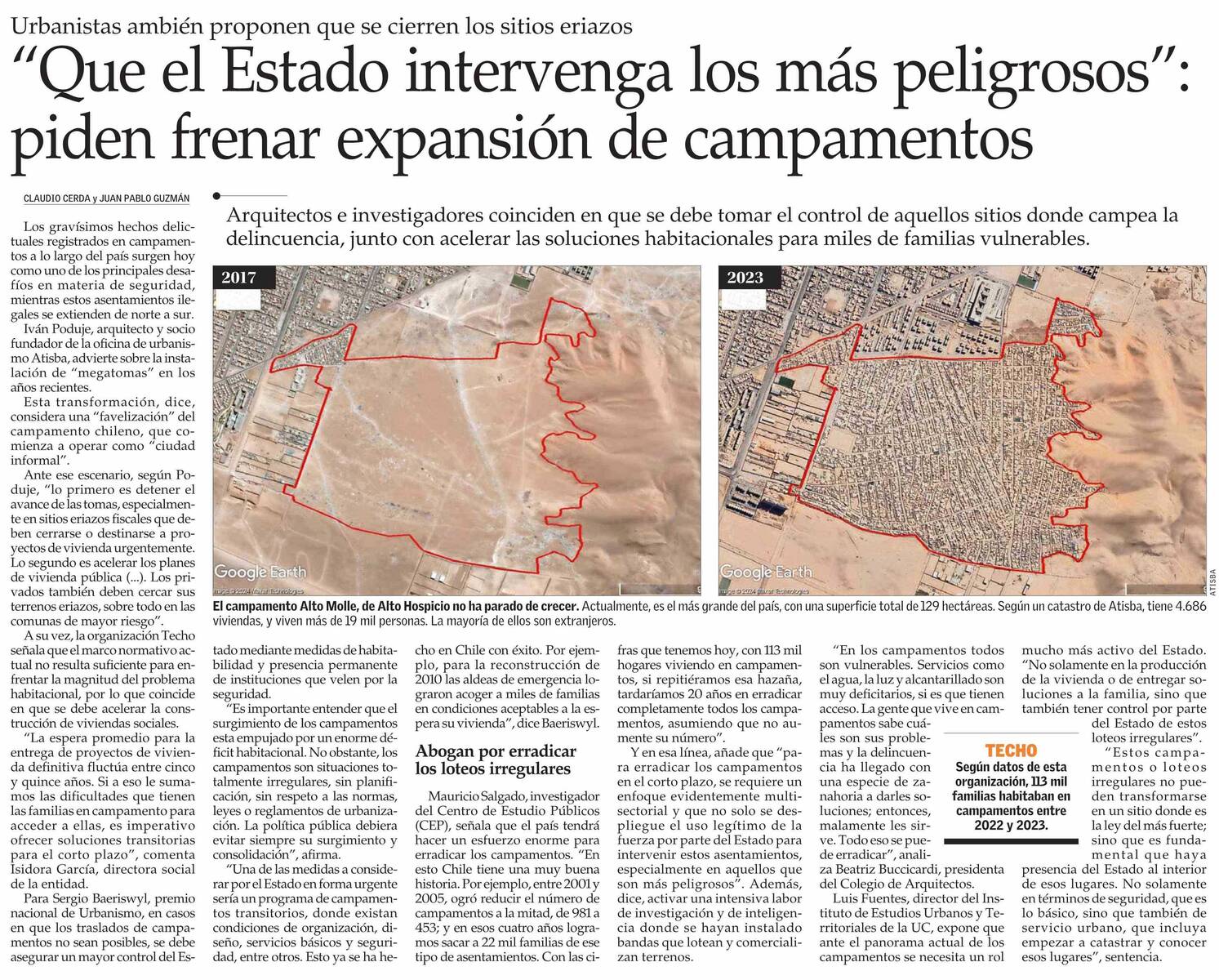 PRENSA I “Que el Estado intervenga los más peligrosos”: piden frenar expansión de campamentos