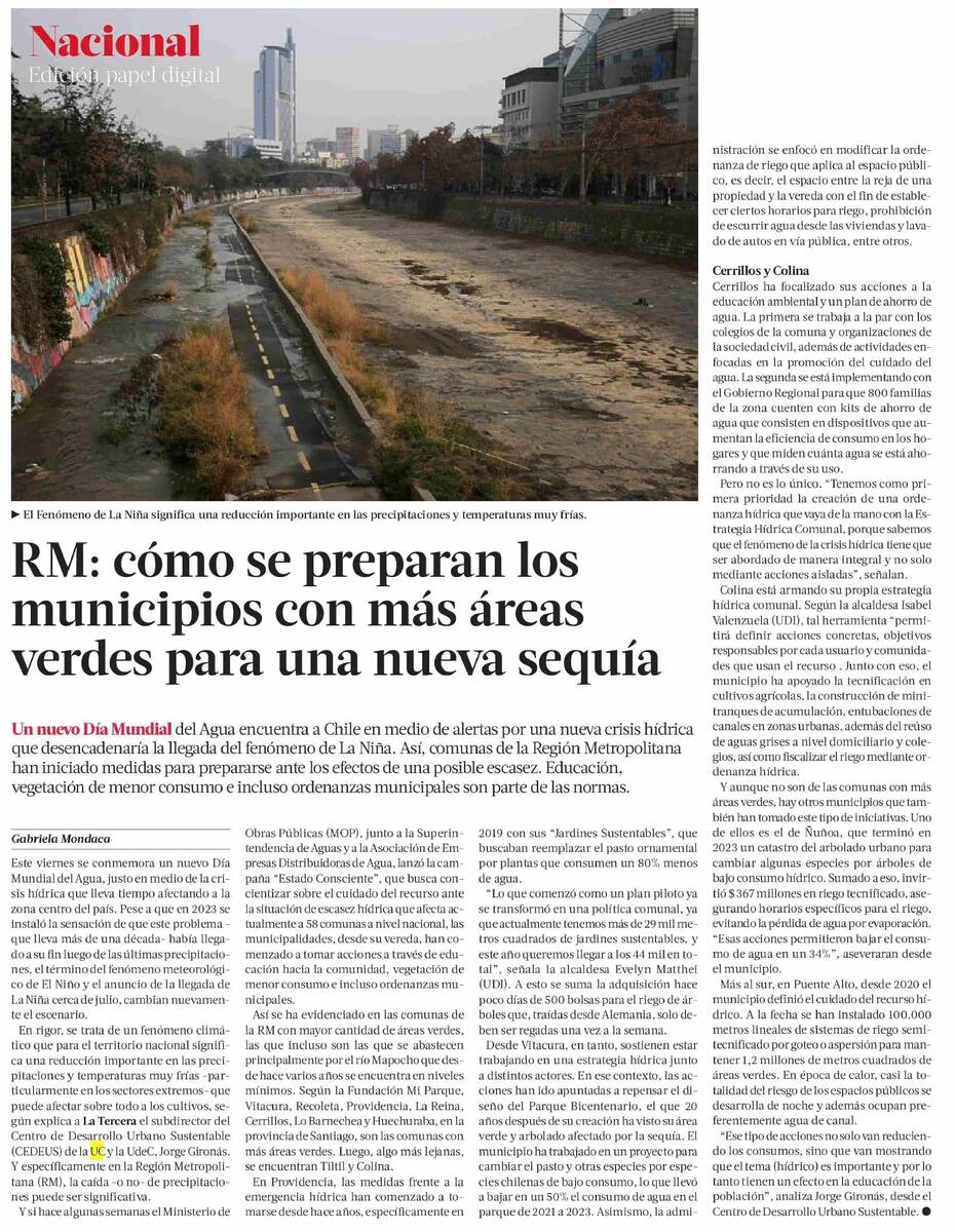 PRENSA I RM: cómo se preparan los municipios con más áreas verdes para una nueva sequía