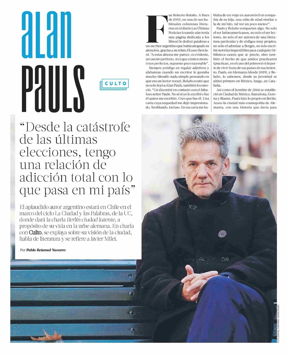 PRENSA I Medios destacan la participación de Alan Pauls en el ciclo La Ciudad y las Palabras de la UC