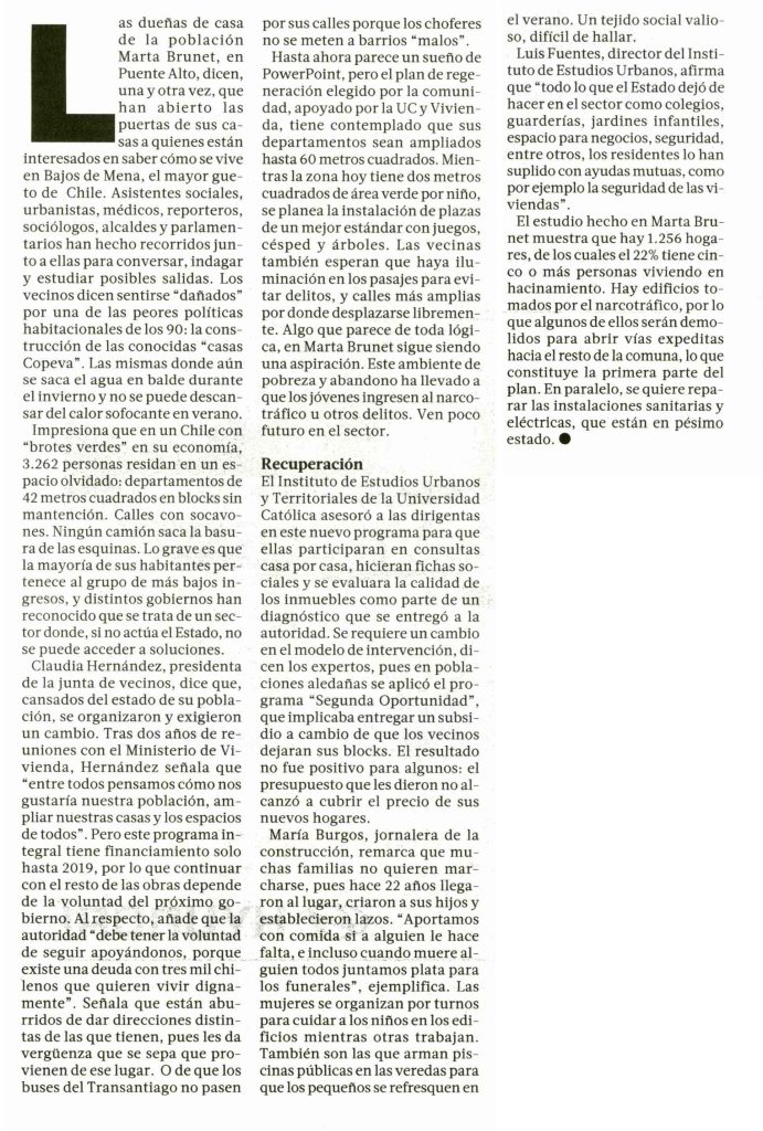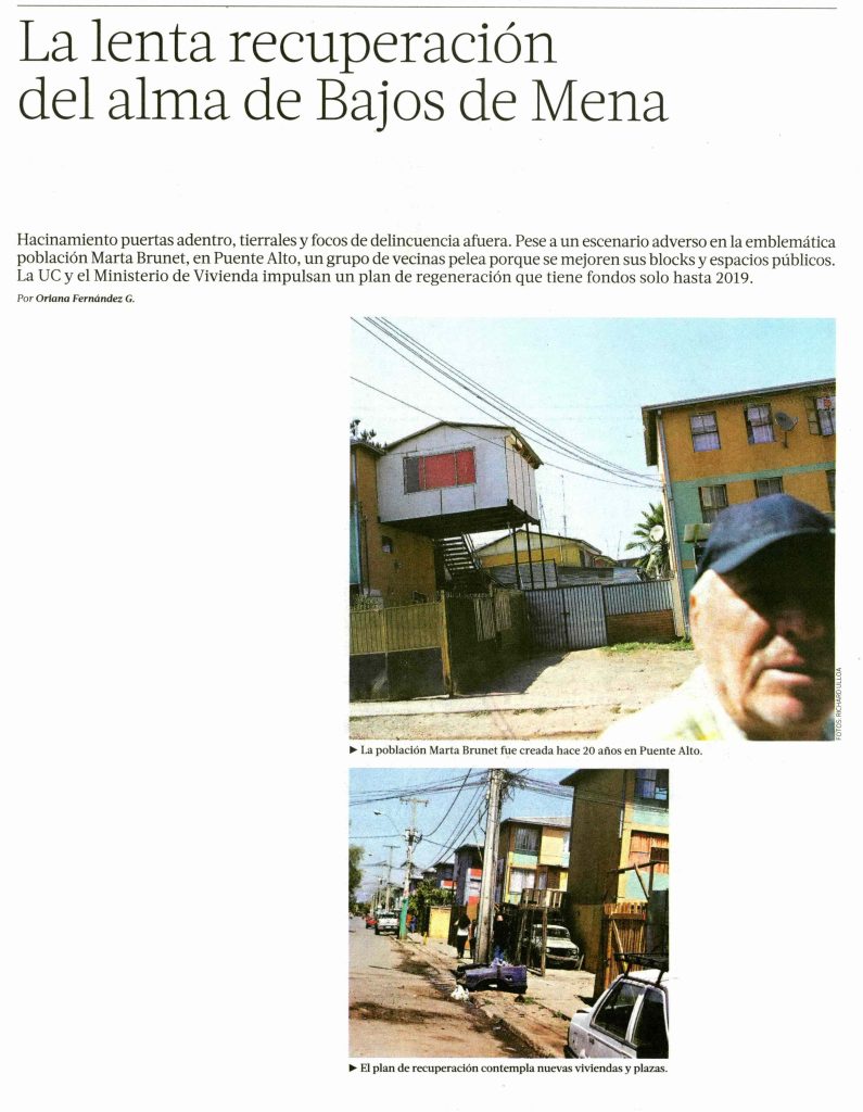 La Tercera publica artículo sobre recuperación de población Bajos de Mena. Se destaca plan de regeneración de la UC y el Ministerio de Vivienda. Habla el director del Instituto de Estudios Urbanos, Luis Fuentes.