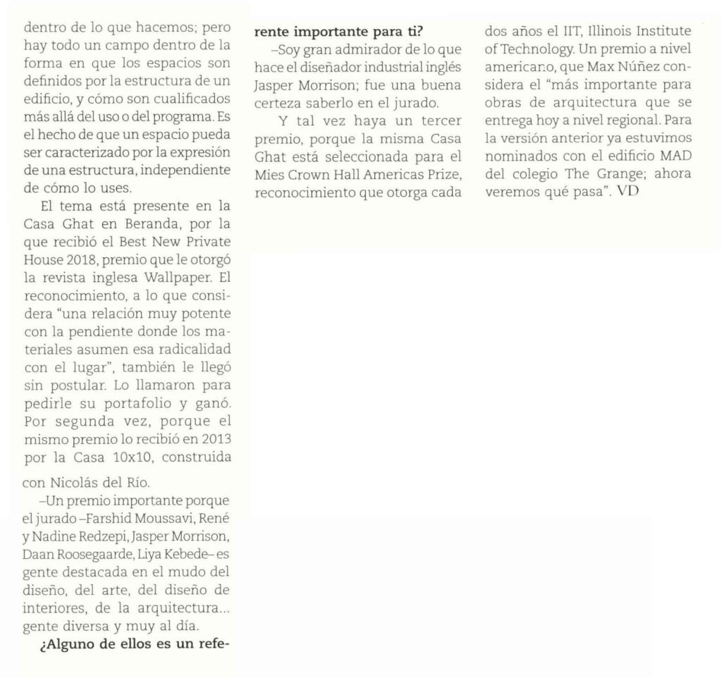 V&D de El Mercurio entrevista al arquitecto Max Núñez, director del programa del Magíster en Arquitectura UC, sobre los reconocimientos recibidos por su oficina.