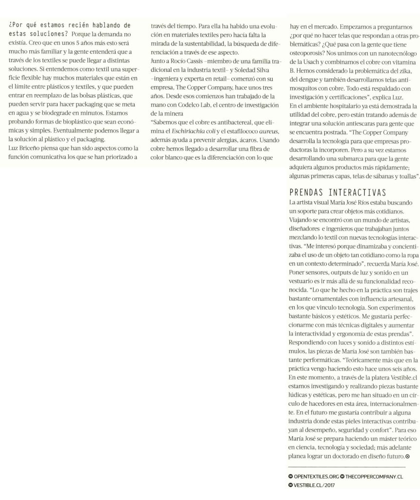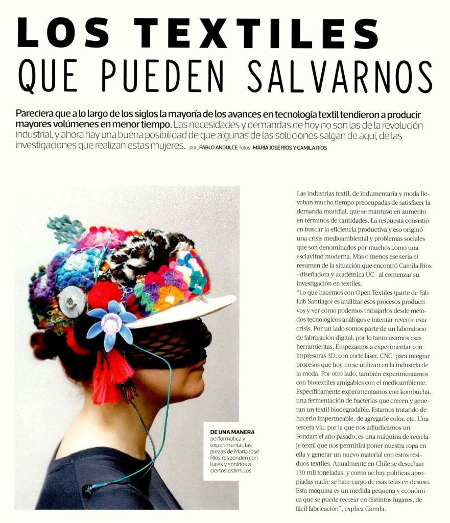 Revista MásDeco publica artículo sobre investigadoras que desarrollan proyectos de nuevos textiles. Habla la profesora de la Escuela de Diseño, Camila Ríos.