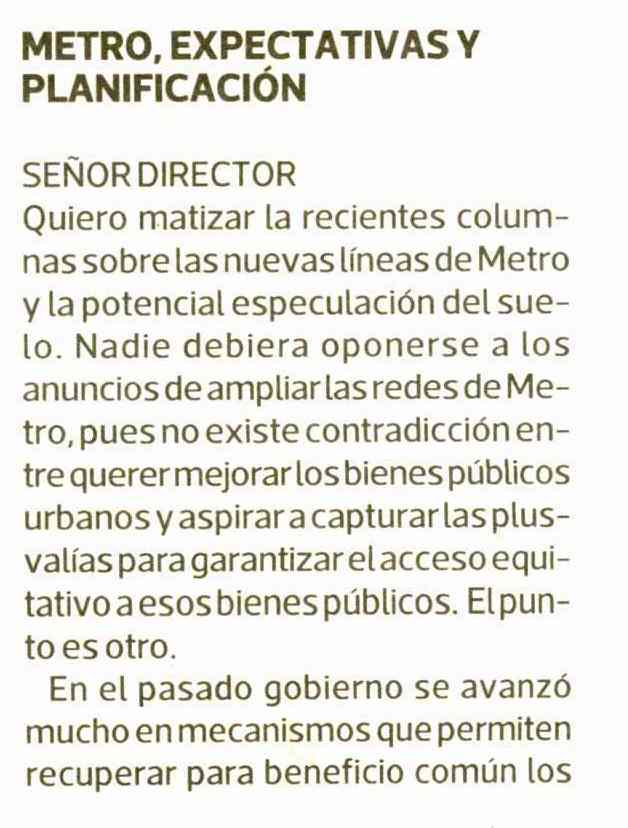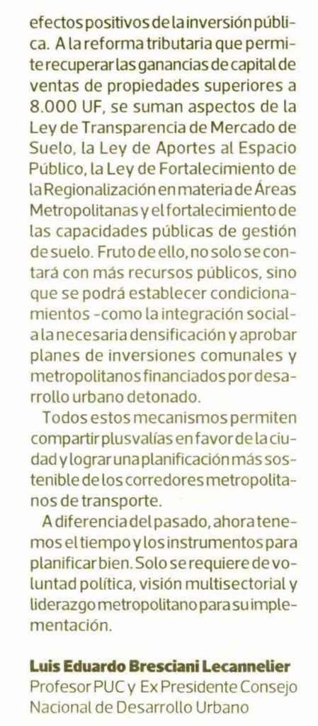 La Tercera publica carta del profesor de la Escuela de Arquitectura, Luis Eduardo Bresciani “Metro, expectativas y planificación”.