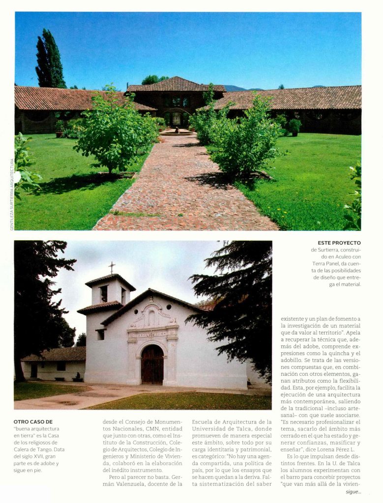 Revista VD de El Mercurio publica artículo sobre la vigencia de la construcción en tierra. Habla la arquitecta Lorena Pérez Leighton, integrante del equipo que impulsó el diplomado “Construcción en tierra: tradición e innovación” que la UC dicta desde 2015.