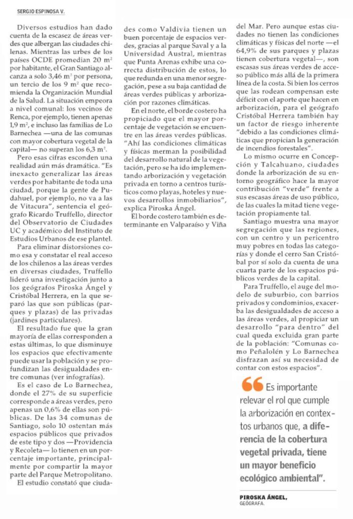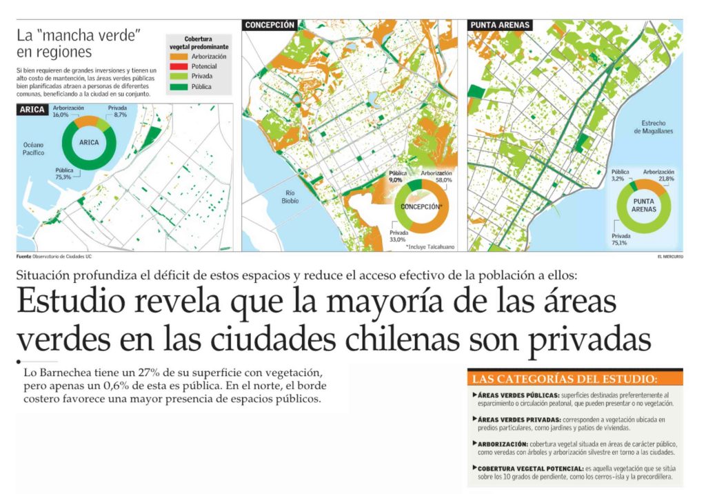 El Mercurio destaca que estudio revela que la mayoría de las áreas verdes en las ciudades chilenas son privadas. Habla Ricardo Truffello, director del Observatorio de Ciudades UC y académico del Instituto de Estudios Urbanos y Territoriales, quien lideró la investigación junto a los geógrafos Piroska Ángel y Cristóbal Herrera.