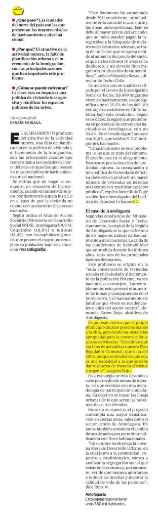 Por Efrain Moraga. La Tercera-Pulso publica artículo sobre el hacinamiento en las ciudades del Norte de Chile. Habla el académico del Instituto de Estudios Urbanos, Javier Ruiz-Tagle.   + Revisa reportaje completo aquí.