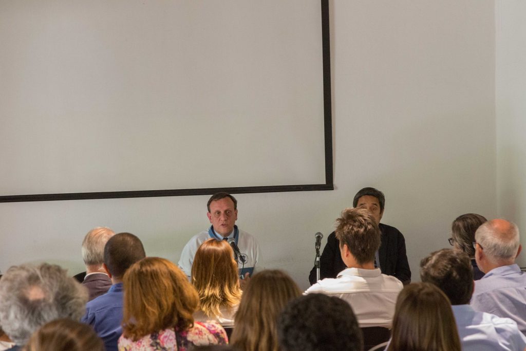 Planta docente, carrera docente, investigación, vinculación con el medio, extensión y otros tópicos fueron abordados en un fructífero diálogo que se prolongó de manera amena y distendida durante más de dos horas en el Salón Sergio Larraín, entre el Rector de la Universidad Católica, Ignacio Sánchez, el Decano FADEU UC, Mario Ubilla, y más de 40 académicos y académicas de las escuelas de Arquitectura, Diseño y del Instituto de Estudios Urbanos y Territoriales.