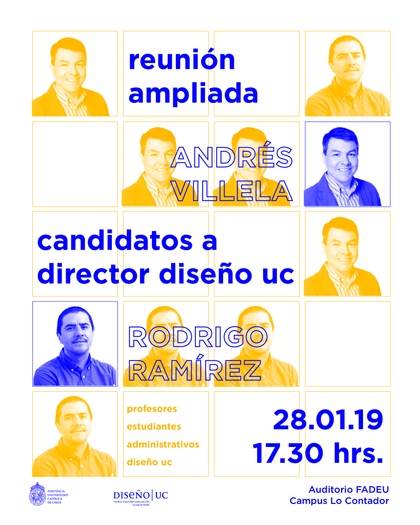 Rodrigo Ramírez Montecinos y Andrés Villela Chacón, como únicos dos candidatos a Director de la Escuela de Diseño.