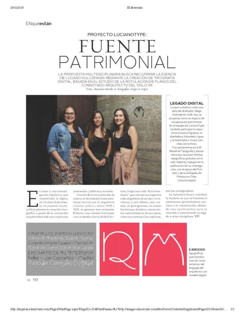 Revista Vivienda y Decoración de El Mercurio destaca el proyecto Luciano Type, conformado por la arquitecta UC, Arantxa Figueroa y la diseñadora e historiadora, Antonieta López y Triana Sánchez, respectivamente.
