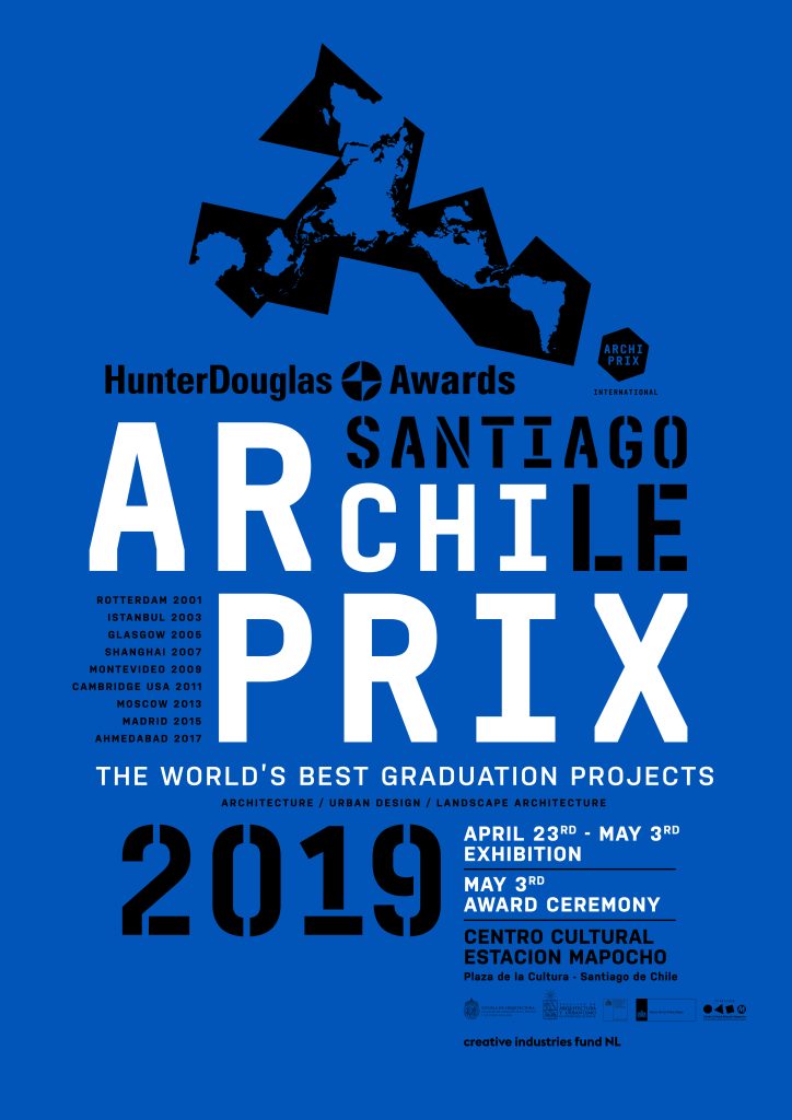 Tras sus exitosas ediciones anteriores, que incluyen Rotterdam (2001), Shanghái (2007), Moscú (2013) y Ahmedabad (2017), sólo por nombrar algunas, la décima versión de Archiprix International se realizará en Santiago de Chile, entre el 22 de abril y el 3 de mayo, con el apoyo y participación de la Escuela de Arquitectura de la Pontificia Universidad Católica de Chile y la Facultad de Arquitectura y Urbanismo de la Universidad de Chile, instituciones que coorganizan las actividades de la edición 2019.