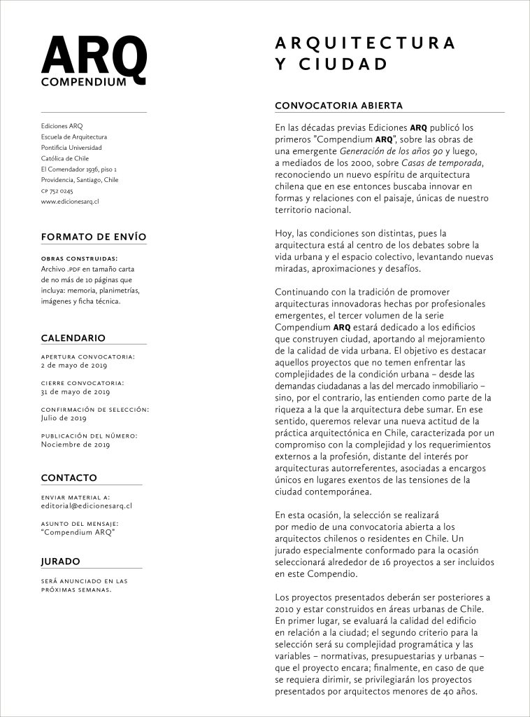 Convocatoria “Compendium ARQ: Arquitectura y Ciudad”