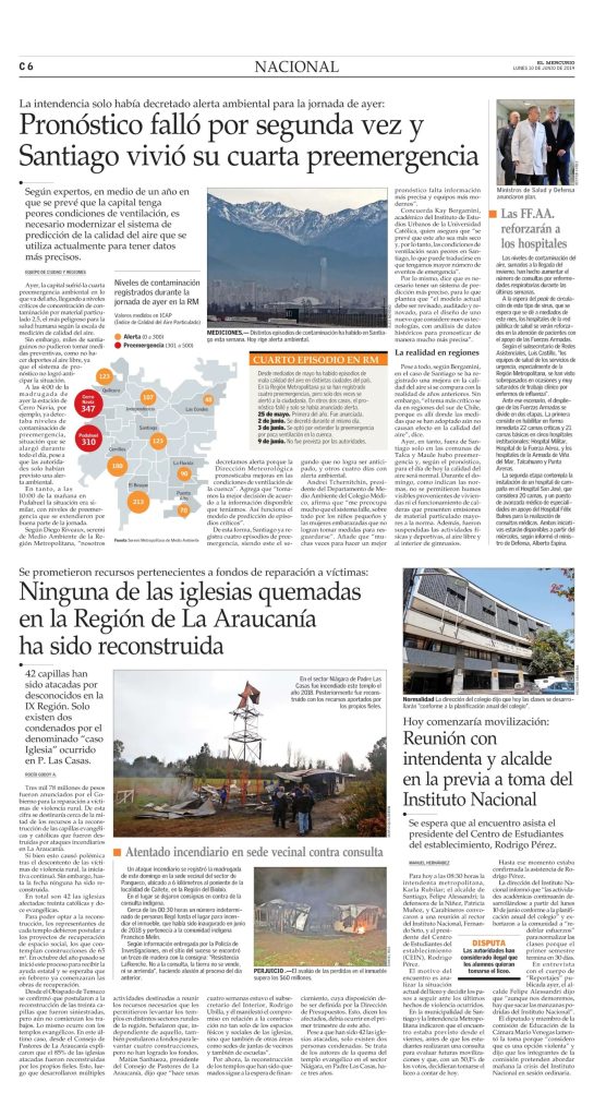 El académico del Instituto de Estudios Urbanos, Kay Bergamini es entrevistado en el diario El Mercurio sobre preemergencias en Santiago.