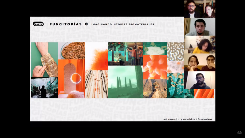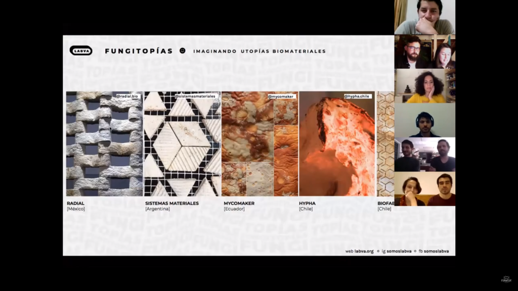 Por otro lado, y también en el contexto del festival, Sebastián Rodríguez y Andrés Romero de Biofab UC participaron en el conversatorio “Fungitopías, imaginando utopías biomateriales”, organizado por LABVA, sumándose así a otra instancia de intercambio entre los diferentes representantes latinoamericanos en la biofabricación. Esto le permitió al equipo compartir y “construir posibles escenarios futuros a partir de la investigación con seres vivos y la cultura BIO”.