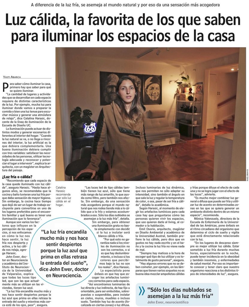 Las Últimas Noticias destaca las diferencias entre la luz cálida y la luz fría para iluminar los espacios de la casa. Habla la profesora de la Escuela de Diseño,Catalina Harasic. + Revisa nota completa aquí.