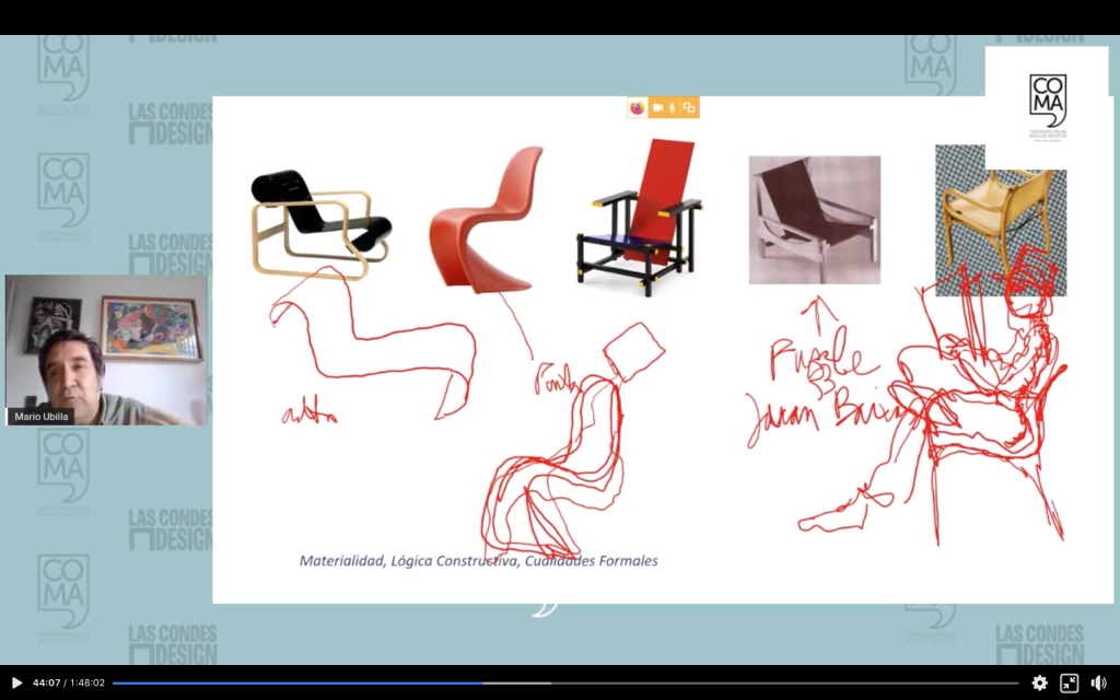 La charla abordó sobre cómo el mueble y el diseño del equipamiento interior se transformaron en elementos fundamentales de la articulación espacial, a través de la revisión de varios proyectos conducidos por el Decano Ubilla, como las Bibliotecas Escolares Futuro, las Librerías UC, módulos de vivienda, y otros, en los cuales el movimiento y la flexibilidad son conceptos fundamentales en el diseño de mobiliario.