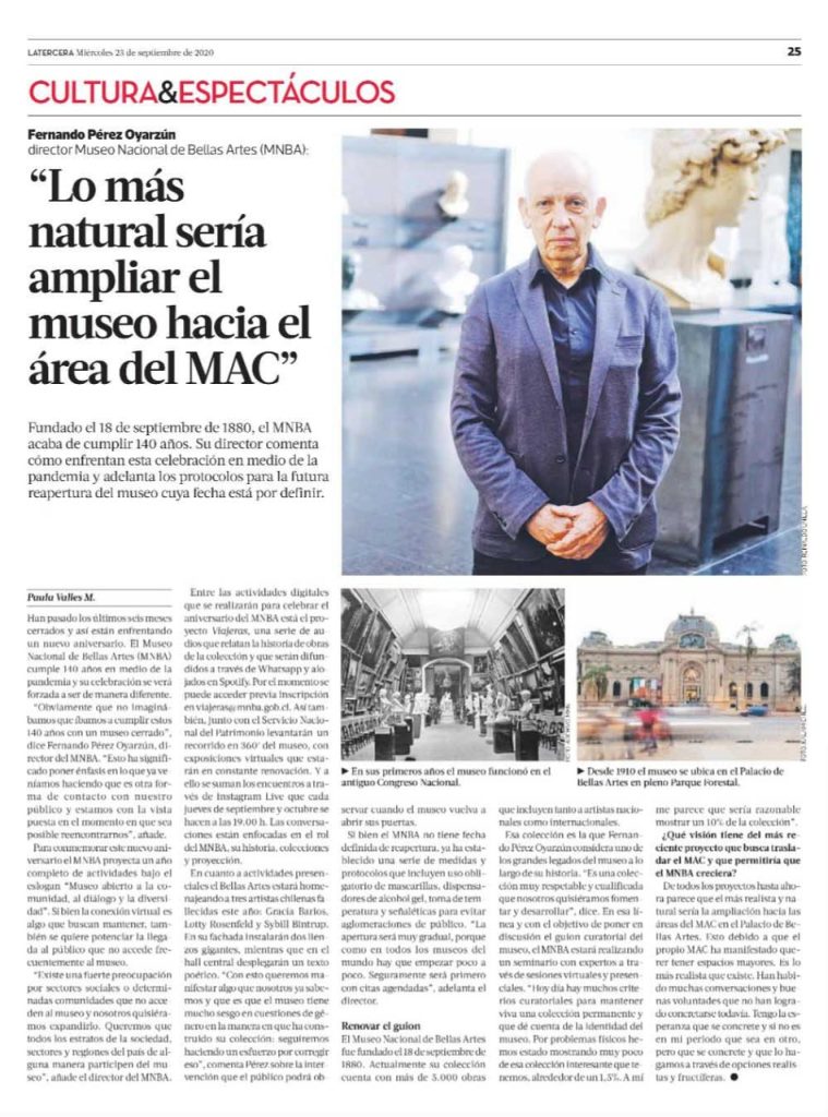 La Tercera destaca la entrevista al académico y director del Museo Nacional de Bellas Artes sobre la conmemoración de los 140 años de la institución. + Revisa la entrevista completa aquí.