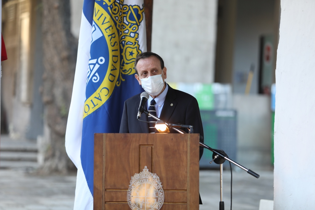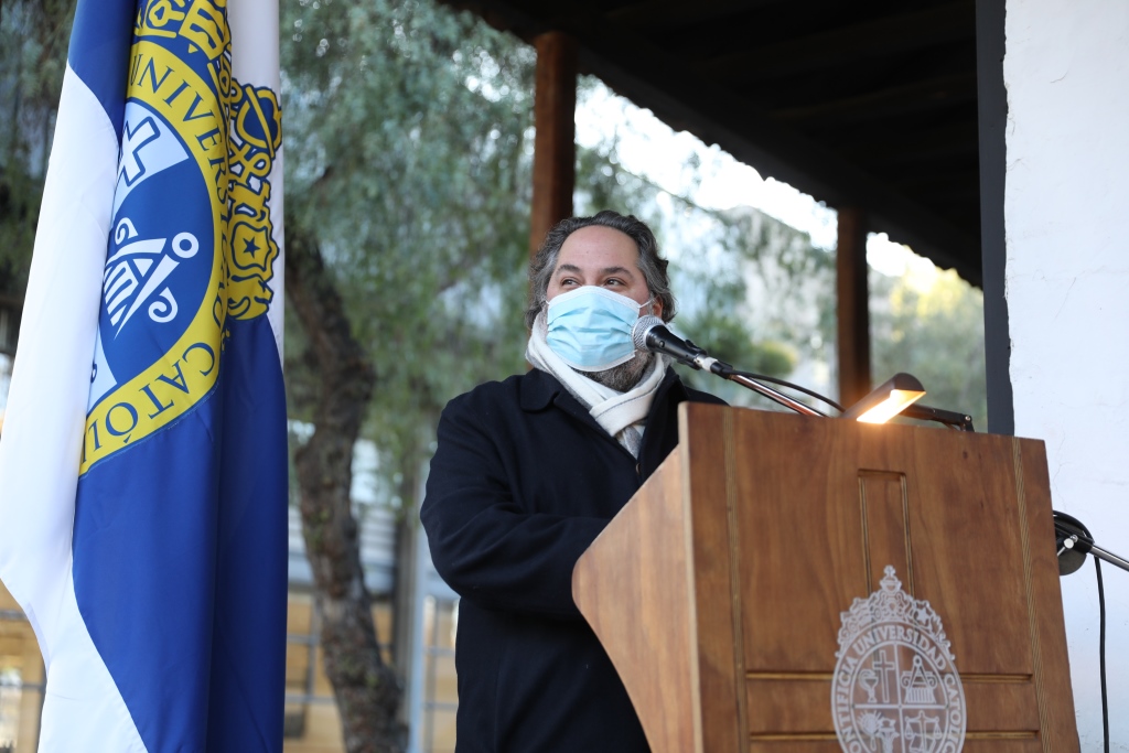 En su intervención, el Rector Sánchez elogió la iniciativa, recalcando que “tiene especial sentido que esta actividad sea la primera presencial después de salir del confinamiento, lo que hace que hoy sea un día especial, y es relevante destacar que el lugar donde se emplaza la galería es tremendamente simbólico para el campus, a un costado de la capilla, en un lugar donde se encuentran el patio de Madera con la Casona, de manera muy original en su espacialidad y su sistema de iluminación”.