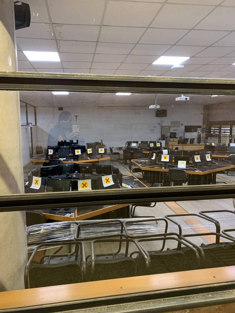Las salas se encuentran habilitadas y para trabajos prácticos, y desde la Facultad se sugiere el uso de las salas Capilla y Refectorio, ambas ubicadas en la Casona Lo Contador. Se debe respetar el aforo que se establece en la señalética en cada sala, mantener distanciamiento físico en su interior y usar mascarilla en todo momento. (Se debe verificar que no hay programación de actividades docentes en ese lugar).