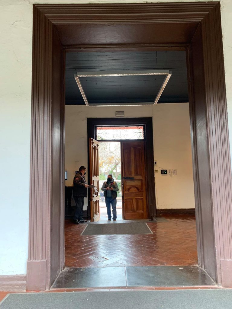 Los accesos serán controlados y solo se realizarán por el ingreso principal de la Casona (El Comendador 1916). Para ello, toda persona deberá llenar el formulario habilitado por la UC ((https://www.uc.cl/uc-contra-el-coronavirus/#formularios) y presentar el acceso permitido al cuerpo de guardias del control de ingreso, además de tomar la temperatura y limpiar las manos con alcohol gel.