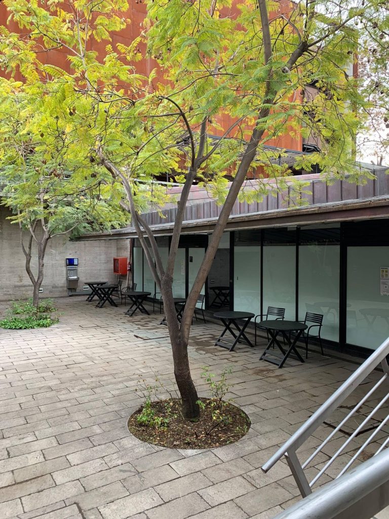 Todos los espacios exteriores son de libre uso (patio de los Naranjos, patio de Madera, cancha, y jardines en general), donde se puede tener momentos de ocio, siempre respetando el distanciamiento físico y haciendo uso de mascarilla. Además, se encuentran abiertos la Librería UC en la Casona, y Librería Tala, Iplot y Cafetería del patio de Madera.