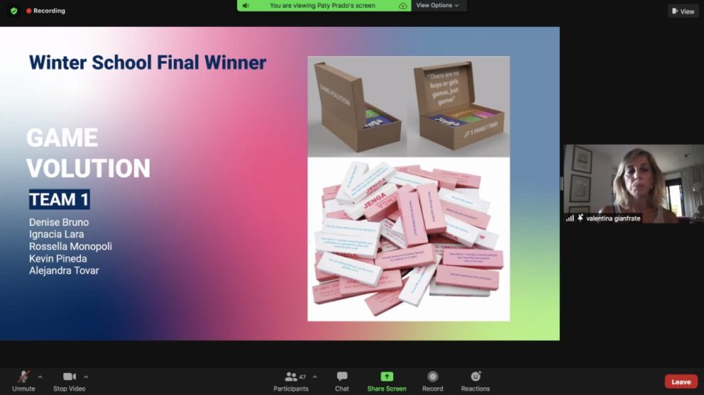 Un programa de formación conjunta de nueve meses (octubre 2020 – julio 2021), articulado en workshops proyectuales y seminarios de profundización en torno al tema de la Innovación Responsable aplicada al Diseño, donde estudiantes de las tres universidades desarrollaron soluciones proyectuales para dar respuestas a desafíos relacionados con los principios de la “Responsible Research and Innovation” (RRI), entre los cuales la “Gender Equality”, que fue el tema del workshop conclusivo de la Winter School.