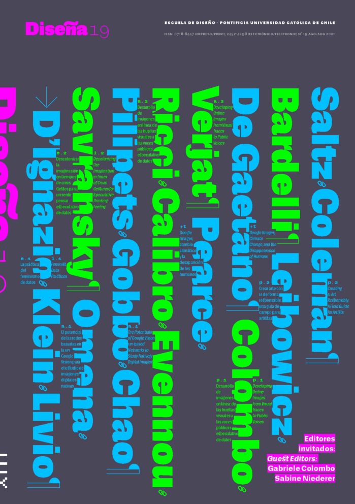 Editado por Gabriele Colombo (Università Iuav di Venezia y Politecnico di Milano) y Sabine Niederer (Colectivo de Metodologías Visuales de la Universidad de Ciencias Aplicadas de Ámsterdam), este número de Diseña explora el ámbito de las imágenes en línea como un sitio para la investigación y el diseño visual. Las contribuciones abordan la diversidad de formatos y usos de las imágenes en línea; su recolección, circulación y co-creación con máquinas; y reflexionan sobre enfoques materiales, participativos y feministas del trabajo visual digital.