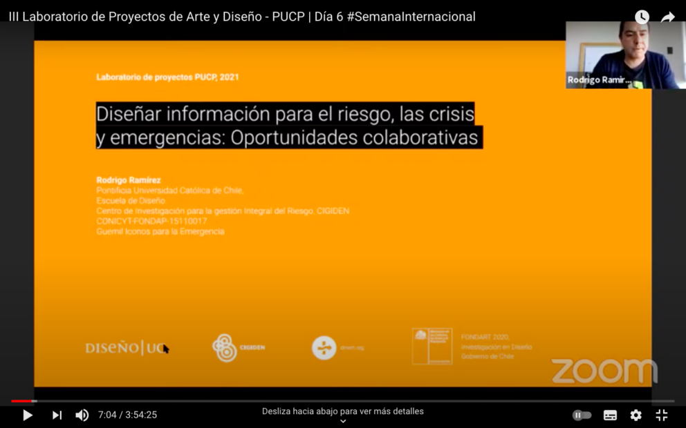 El evento, que reunió a instituciones educativas de arte y diseño a nivel local e internacional y que busca convertirse en un espacio para el intercambio de ideas, procesos y metodologías de investigación y experimentación en Arte y Diseño, también contó con la participación de Rodrigo Ramírez, Director de Diseño UC, quien expuso sobre el Diseño de Información para el riesgo, la crisis y la emergencia.