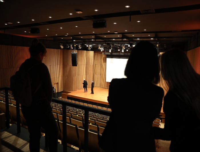 Además del vicerrector de Investigación Pedro Bouchon, decanos y decanas que representaron a las facultades de la UC, y la Directora de Extensión Cultural Daniela Rosenfeld, también hubo un público de invitadas e invitados que formaron parte de uno de los primeros grupos en recorrer el nuevo Centro de Extensión Oriente.
