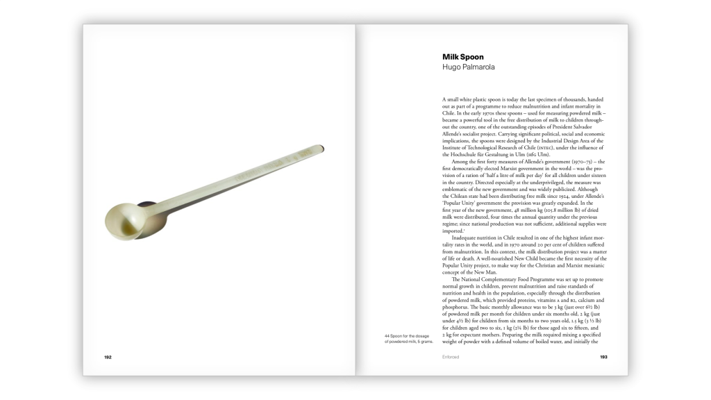 “A principios de la década de 1970, estas cucharas, utilizadas para medir la leche en polvo, se convirtieron en una poderosa herramienta en la distribución gratuita de leche a los niños en todo el país (…). La nutrición inadecuada en Chile resultó en una de las tasas de mortalidad infantil más altas del mundo, en 1970 alrededor del 20 por ciento de los niños sufría desnutrición. En este contexto, el proyecto de distribución de leche se convirtió en un tema de vida o muerte.”