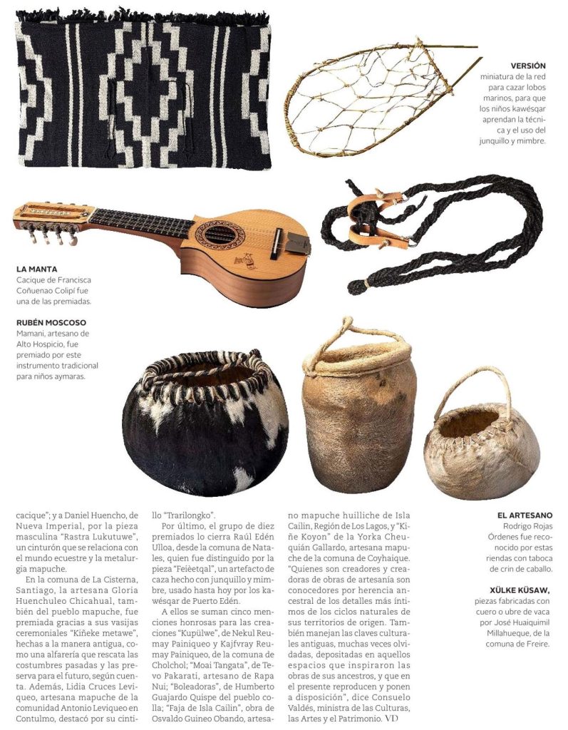 Revista VD de El Mercurio destaca que diez artesanos pertenecientes a pueblos originarios fueron premiadas con el Sello Artesanía Indígena 2021, entregado por el Ministerio de las Culturas, las Artes y el Patrimonio en conjunto con el Programa de Artesanía UC.