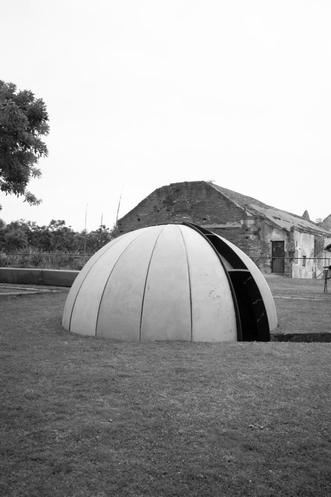 “Marga” da nombre a una esfera sonora semihundida en mitad del césped; un refugio mitad tierra, mitad piedra compuesta por 16 gajos de hormigón que forman una cáscara. Cada una de estas piezas fue diseñada y construida con moldajes textiles para recibir la argamasa, material maleable que graba en su superficie la textura de sus moldes. Las 16 cáscaras de hormigón montadas tomaron 28 días —cada una— para su solidificación. Su nombre alude también a una roca sedimentaria y a una de las provincias de la región de Valparaíso, cuyo origen proviene de la lengua kichwa, donde marga significa “liviano y transportable”.