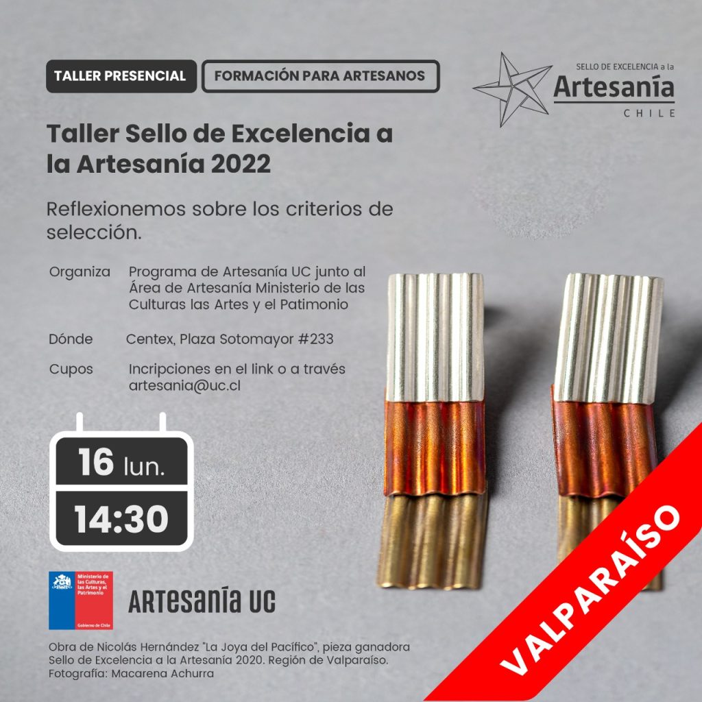 En el marco de la convocatoria 2022 del Sello de Excelencia a la Artesanía, el Programa de Artesanía de la Escuela de Diseño, encabezado por Elena Alfaro, en conjunto con el Área de Artesanía del Ministerio de las Culturas las Artes y el Patrimonio, está llevando a cabo una serie de talleres dirigidos a artesanos bajo el título Reflexionemos sobre los criterios de selección.