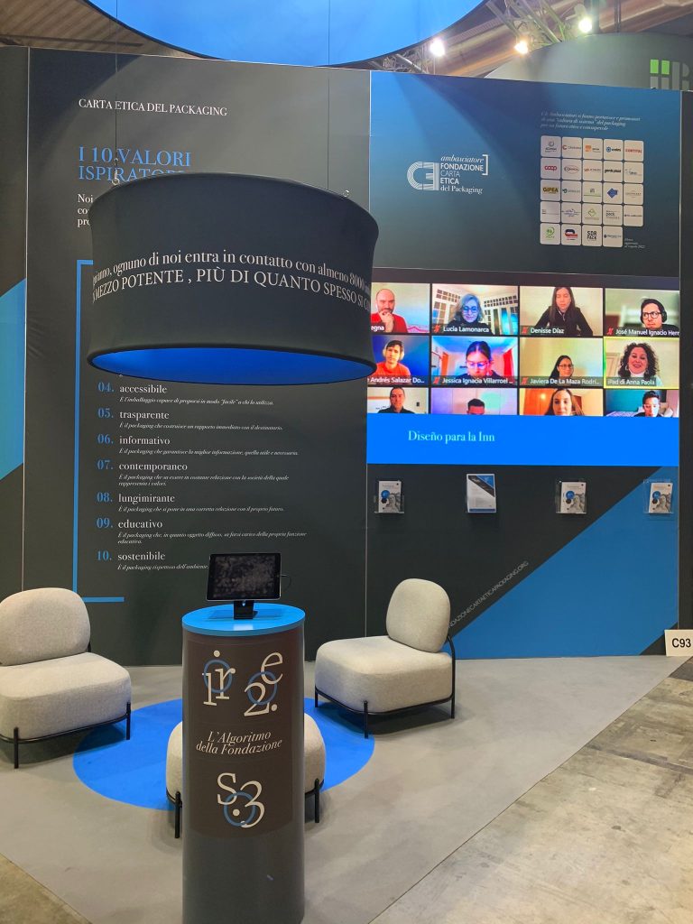 Esta colaboración además fue incluida en el video institucional de la fundación, proyectado durante todo el evento en el stand del Instituto Italiano del Embalaje.
