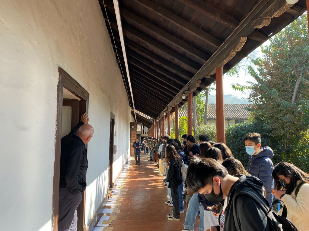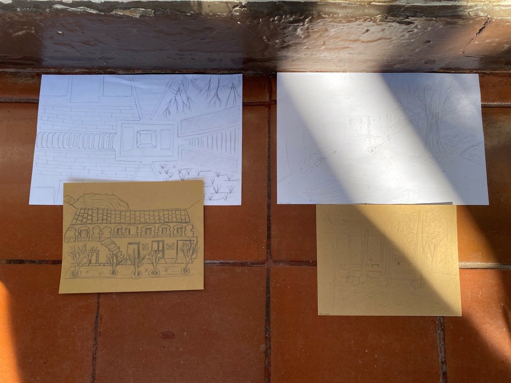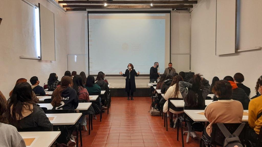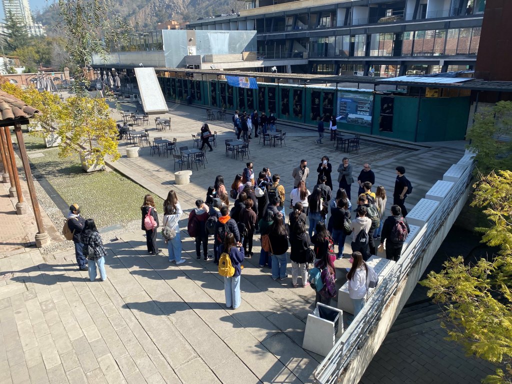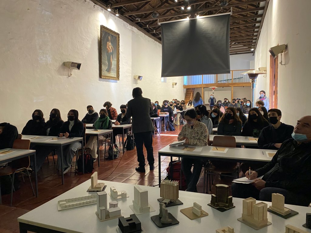 Para desarrollar las actividades de mejor manera, los participantes fueron divididos al azar en dos salas —la Capilla y el Refectorio, espacios comúnmente usados por los cursos de primer año— en donde fueron recibidos por autoridades y académicos de la escuela. Bajo la premisa de experimentar por un día la disciplina, las charlas abordaron la mirada disciplinar y los diferentes desafíos que tienen y tendrán los arquitectos en estos años. A su vez, el ejercicio práctico del día contó con una breve introducción al dibujo en la arquitectura y consistió en la realización de dos dibujos: primero uno en sala, en el que se les pidió dibujar un patio o plaza significativo que recordaran; y luego uno en terreno, donde debieron observar y dibujar uno de los patios del Campus Lo Contador. Una vez finalizados los dibujos, éstos se expusieron afuera de cada sala de la casona para ser vistos y comentados por el cuerpo docente y los mismos estudiantes. Por último, para la convivencia antes del tour, ambos grupos se unieron al centro del Patio de Los Naranjos y en torno a la pérgola para poder conocerse y conversar, junto a los profesores, de forma más distendida.