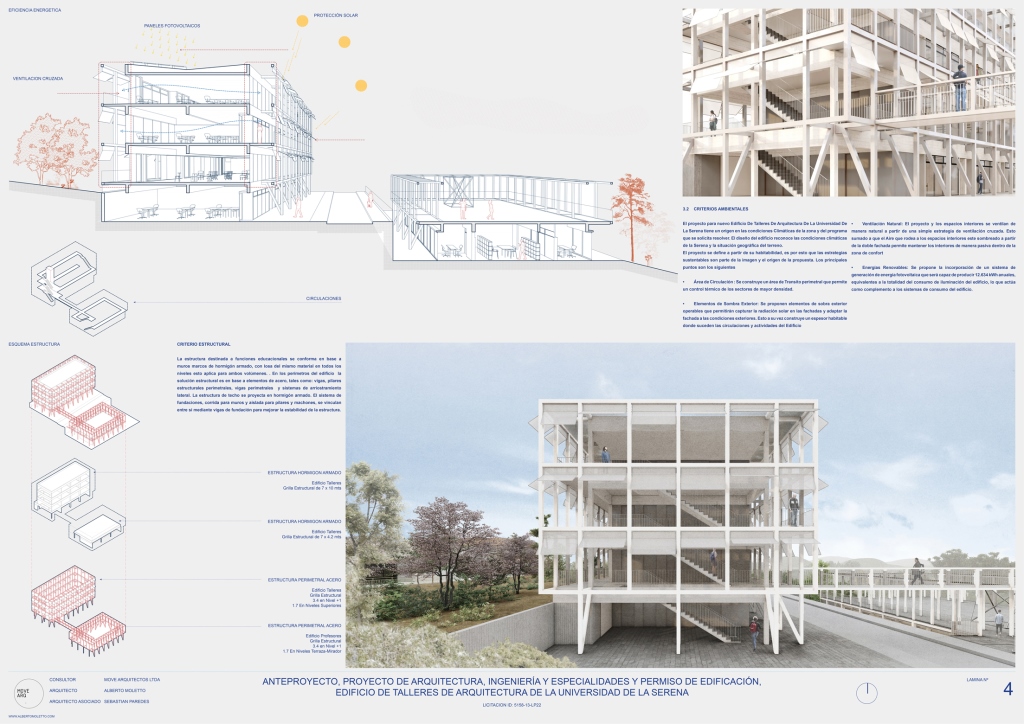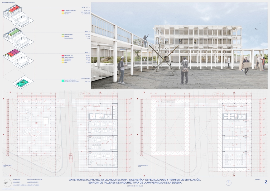 El profesor ARQ UC Alberto Moletto, en asociación con Sebastián Paredes, también profesor en nuestra escuela, obtuvo el primer lugar en la licitación pública para el diseño del nuevo edificio de talleres de arquitectura de la Universidad de la Serena, a construirse en el Campus Andres Bello de la misma ciudad.