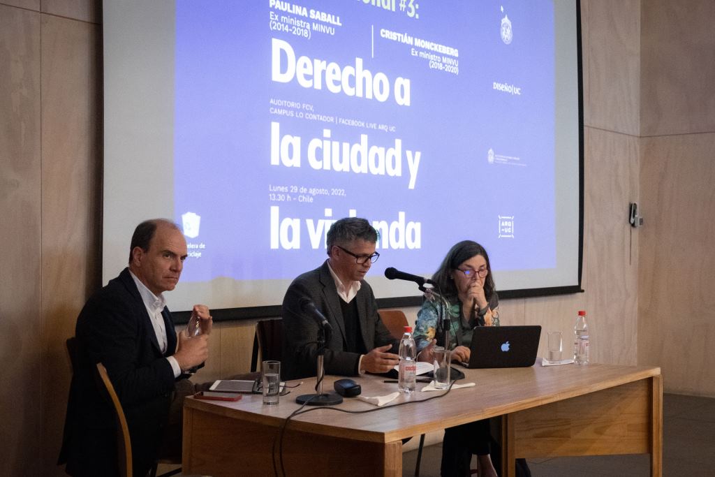 Por último, la tercera sesión, dedicada al derecho a la ciudad y a la vivienda, contó con la participación de los ex ministros de vivienda Paulina Saball y Cristián Monckeberg y establecieron tres líneas a conversar: el derecho a una vivienda digna y adecuada, el derecho a la ciudad y el territorio, y los temas en torno a la gobernanza del territorio. Saball estableció tres aspectos por los cuáles valoraba la propuesta constitucional: El Estado de derecho, el derecho a la vivienda digna y adecuada, y las oportunidades de construir acuerdos sociales que abre la implementación de la constitución, en caso de aprobarse. Para la ex ministra, “parte importante de los desgarros que hoy en día tenemos como país están relacionados con la falta de cohesión social y fundamentalmente a los temas de desigualdad” estableciendo que la nueva constitución establece “un cambio trascendental en la manera de articular nuestro país”. Monckeberg, por su lado, mostró una esperanza ante cualquier resultado: “Yo creo, y estoy muy convencido de esto, de que todo este proceso va a servir para llegar a una solución constitucional ya sea en uno o en otro sentido: algunos dicen que la alternativa es el apruebo otros dicen que es el rechazo”. Sobre vivienda, el ex ministro señaló que en la convención “todo iba en la lógica del derecho a la vivienda” destacando que era una idea transversal. En ese sentido, habría que preguntarse qué implica que sea “digna y adecuada”. Para él lo novedoso, que daría para hablar, “es el rol del Estado en materia de levantar proyectos de vivienda”, y también “cómo participa el Estado en la captura de la plusvalía”.