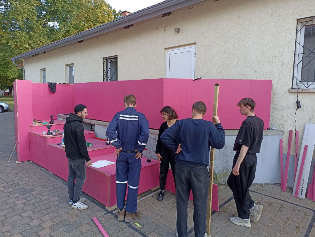 En el contexto de estancamiento general del desarrollo en áreas rurales, el workshop organizado por la Technische Universität Berlin (TU Berlin) reunió a expertos internacionales de distintas regiones del mundo que experimentan fenómenos y experiencias similares. En términos de construcción circular, esta academia de verano tuvo como objetivo utilizar materiales que ya están en un ciclo material. Así, la transformación, el reciclaje y la reutilización fueron los términos esenciales para el trabajo realizado en las jornadas, reutilizando textiles o ladrillos rescatados de la localidad, usando tierra cruda producida localmente. Por otro lado, también se utilizó la plataforma de observación de MVRDV, la que fue transportada especialmente desde Rotterdam a Sundhausen.