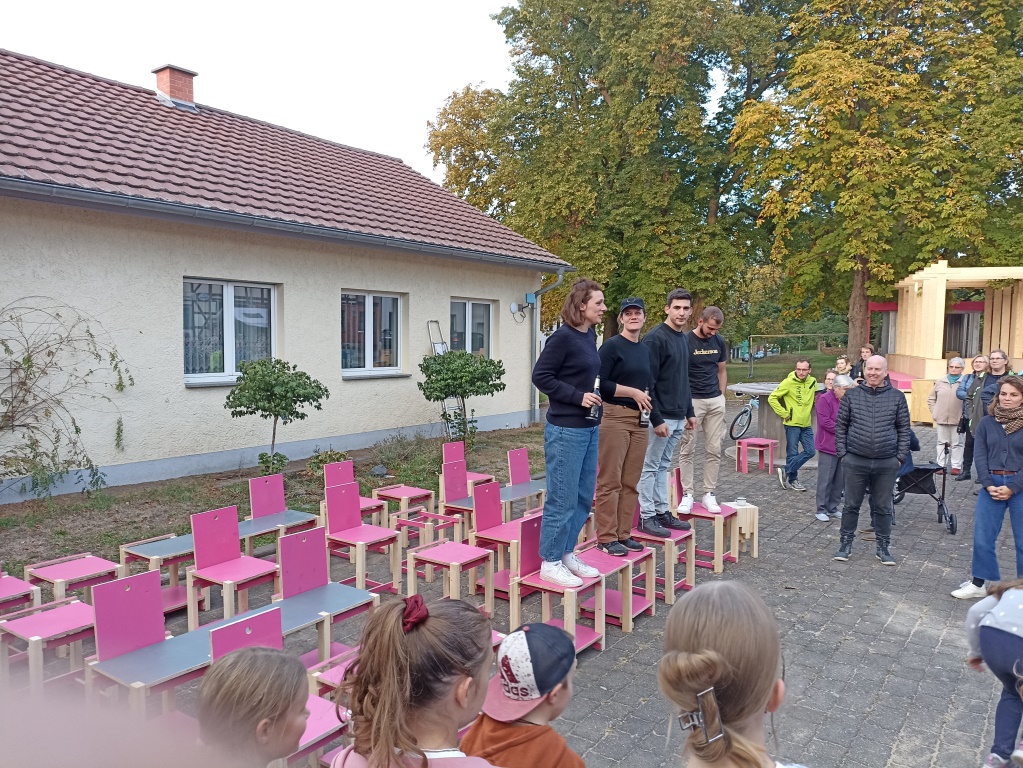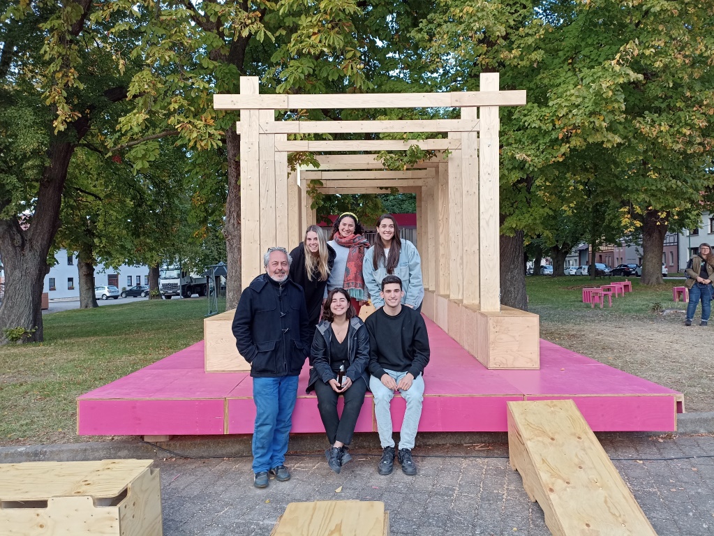 De esta forma, los equipos interdisciplinarios de estudiantes diseñaron y construyeron — usando la metodología “Design-Build”— intervenciones en el espacio público, transiciones a espacios interiores y muebles para uso flexible buscando contribuir al desarrollo sostenible y la reactivación del nuevo centro del pueblo de Sundhausen. Los trabajos se centraron en el interior y exterior de un antiguo supermercado en desuso, cuestionando así cómo el edificio existente se comunica con el área central de la localidad, qué usos potenciales se pueden desarrollar y cómo el edificio ubicado en la plaza puede volver a ser un nuevo centro en funcionamiento.