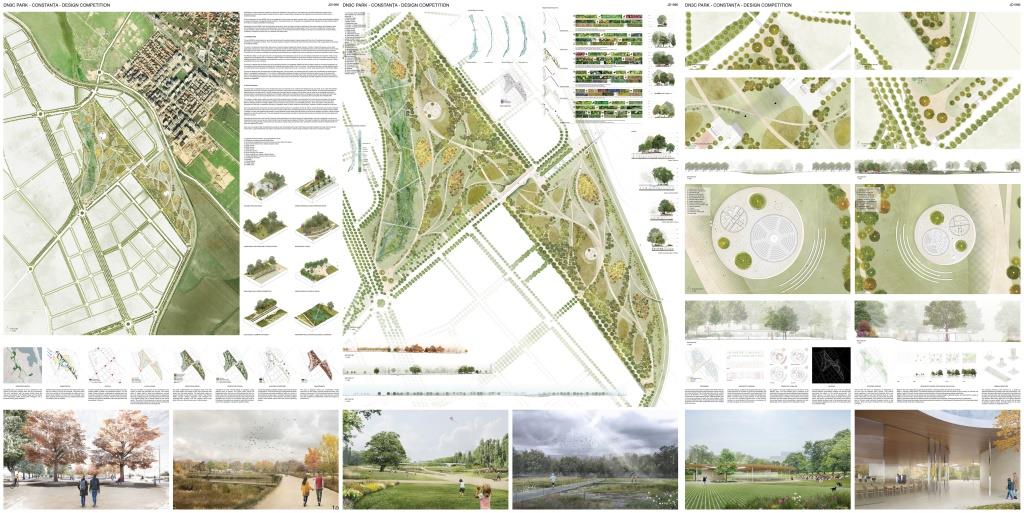 Bajo el título “Parque DN3C”, el proyecto —desarrollado por un equipo en el que participaron miembros de la comunidad ARQ UC— buscaba un equilibrio entre el hábitat de los residentes de Costanza y el hábitat de la flora y la fauna de la ciudad. Así, se pretendía fomentar la biodiversidad a través de diferentes ecosistemas, como también acoger a una diversa gama de personas a través de múltiples programas que ponían en valor el contexto existente. Asimismo, el parque propuesto actuaría también de conector urbano, enlazando la red de bicicletas y los caminos peatonales existentes y futuros y ampliando los usos previstos.