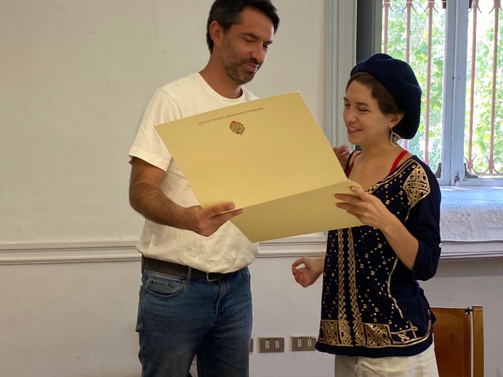 “Para nosotros es un gran honor entregarte este reconocimiento, porque de alguna manera recoge los valores que tú encarnas tan bien, y denota, además, tu dedicación absoluta a una carrera y una disciplina maravillosa que requerirá también de toda tu innovación para enriquecerla y darle mayor valor”, explicó el Decano Ubilla en la oportunidad.