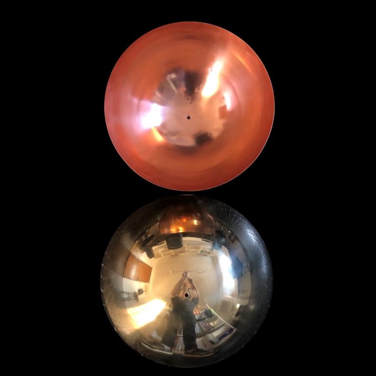 La obra en exposición de la profesora ARQ UC Gabriela Medrano, “tres personajes habitan” la galería 8 1⁄2, “atrapados en una atmósfera rosada”. De acuerdo a la descripción, cada uno está compuesto por un puntal telescópico y tres piezas semiesféricas de metal repujado, elaboradas a través de “un proceso mecánico que consiste en dar forma contra una matriz a discos de metal de acero, cobre y bronce”. La disposición de las diferentes semiesferas —adosadas con agarraderas— “alude a una diferenciación de género”. En ese sentido, “la concavidad femenina y su opuesto convexo masculino”, se van alternando para darle a estos personajes “una condición hermafrodita”.
